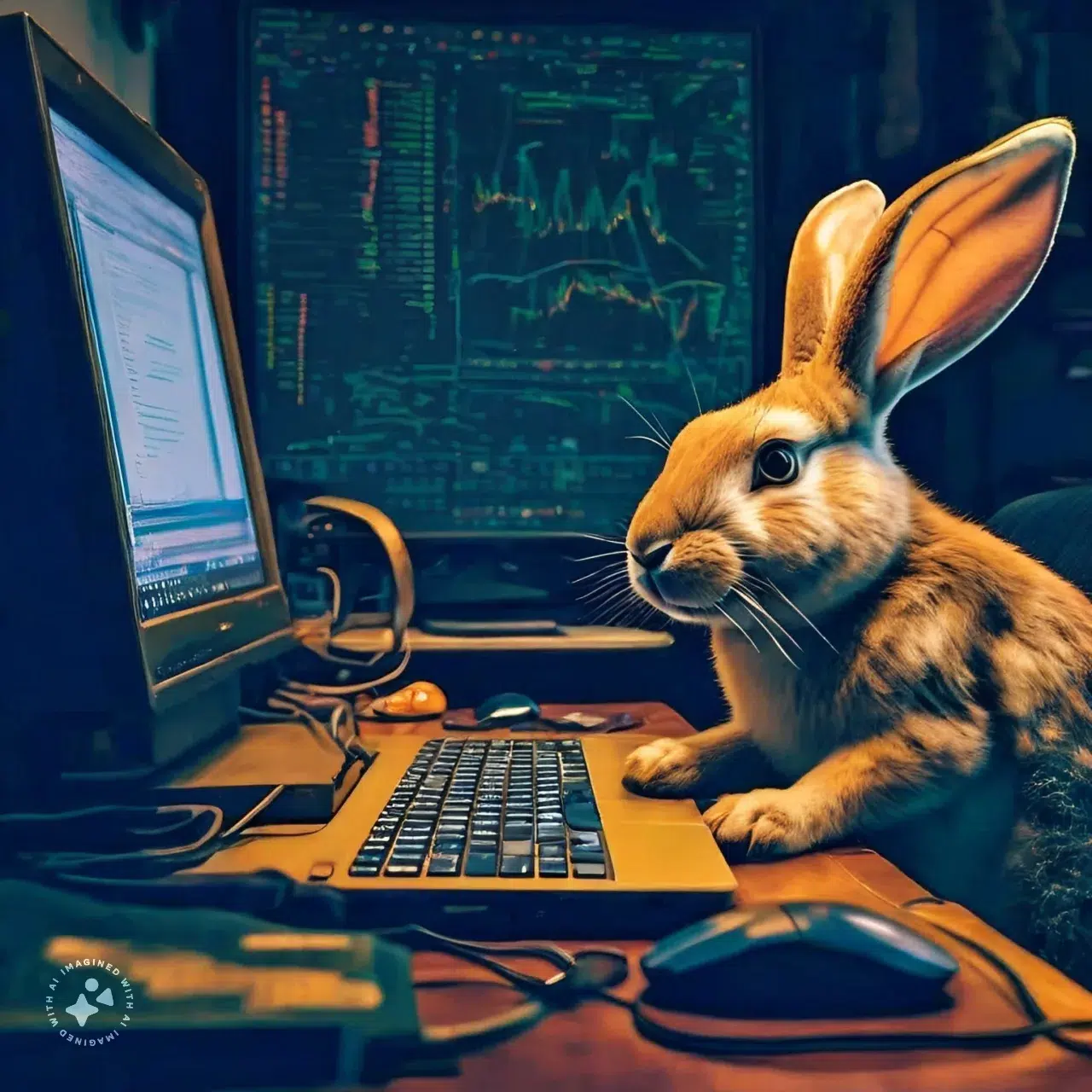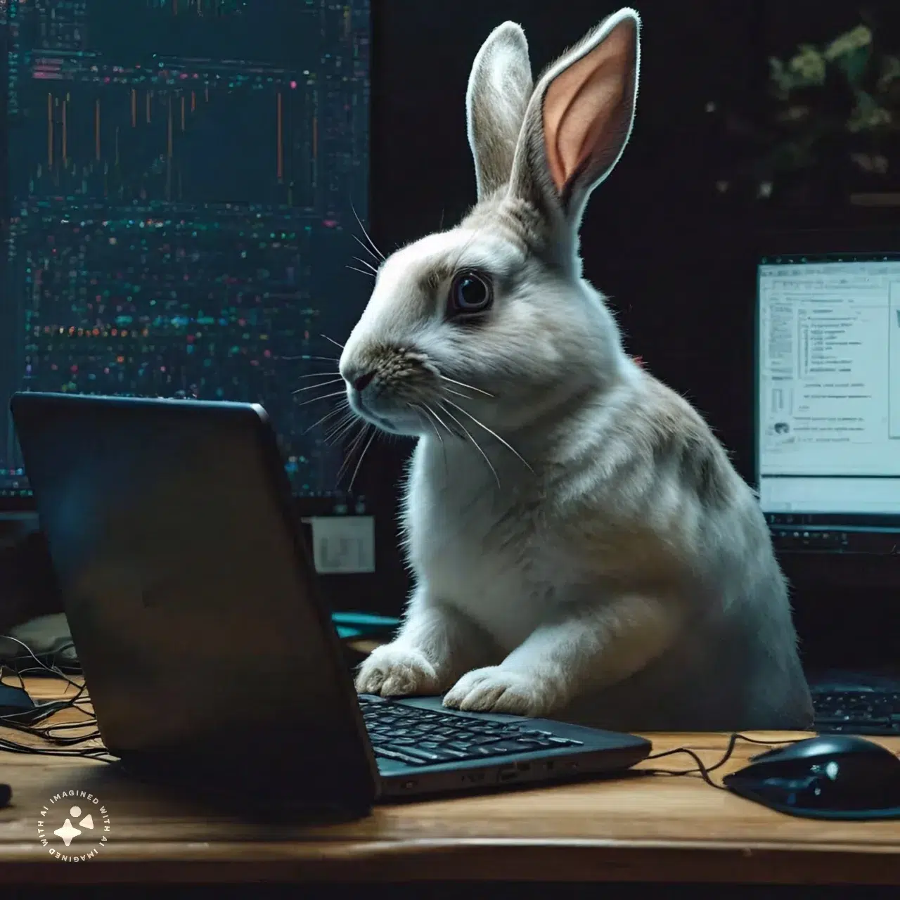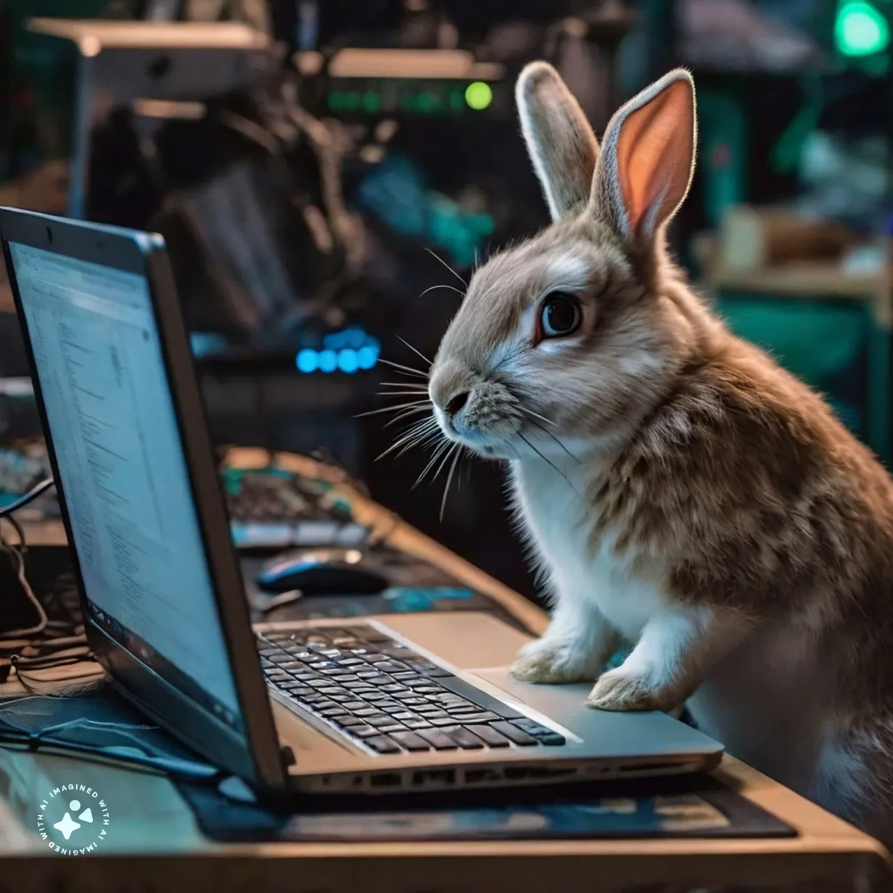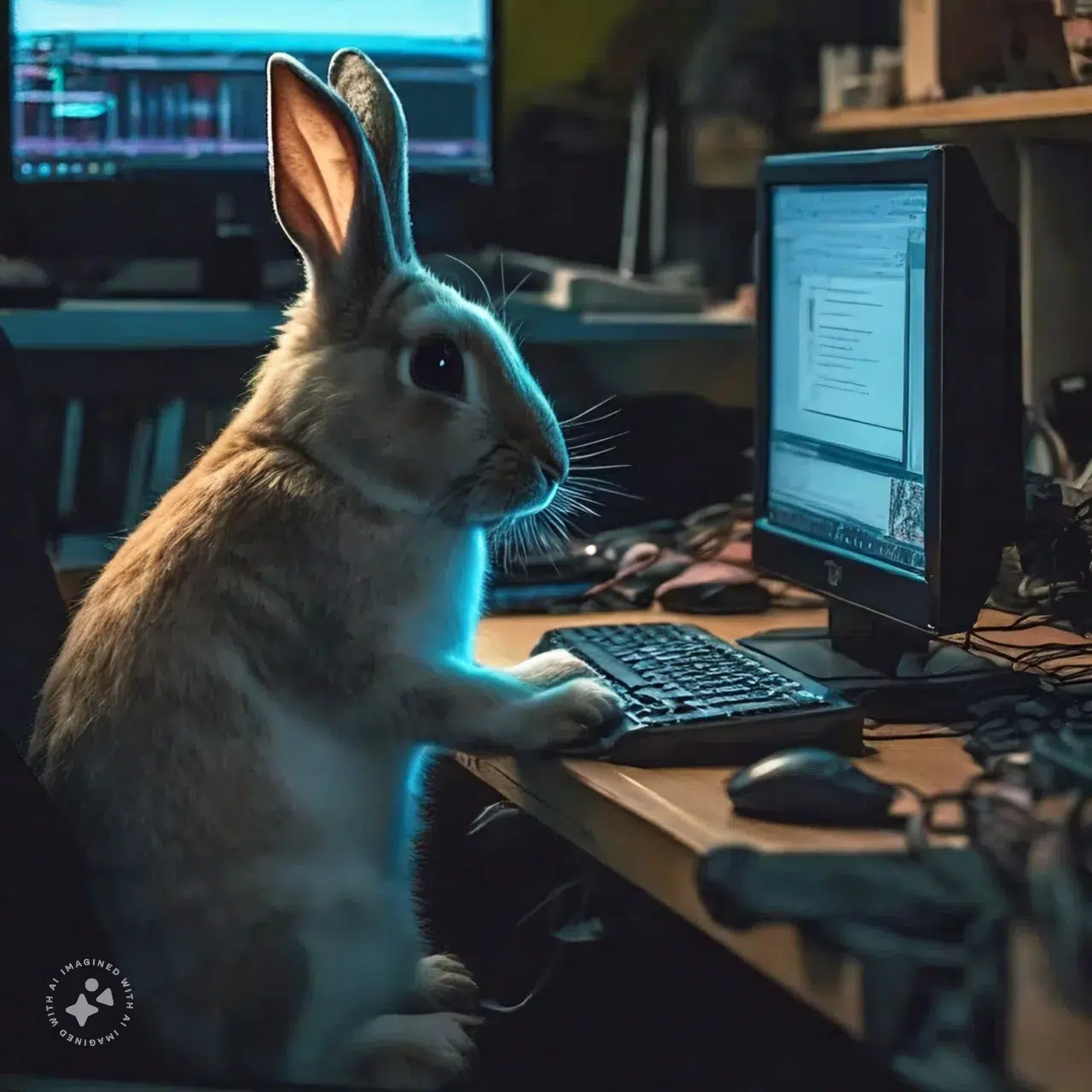 Coniglio che digita al computer.